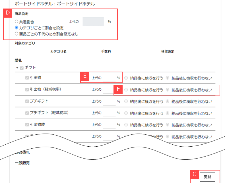 カテゴリごとに割合を設定:下部に表示されているカテゴリごとに割合を入力ください。【E】