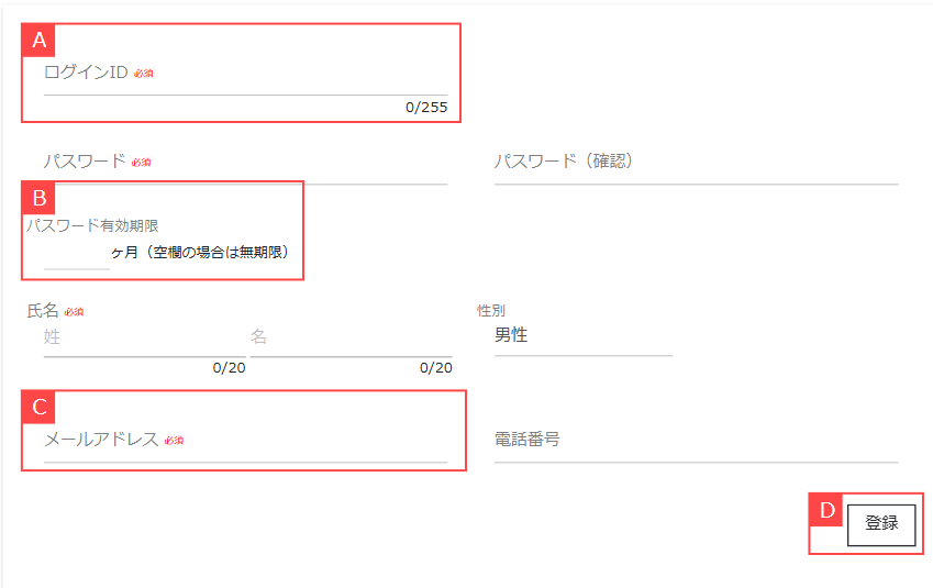 ④登録ボタンをクリックすると、登録が確定します。【D】