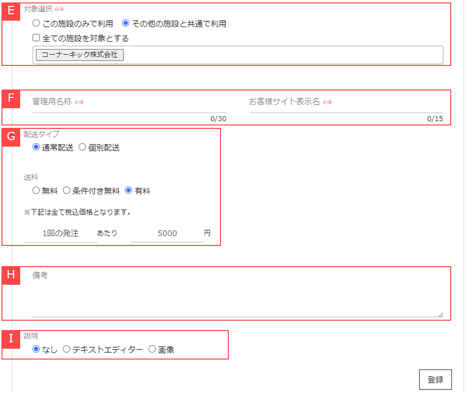 ⑦配送タイプ、及び金額を設定します。【G】